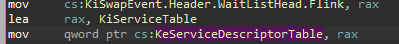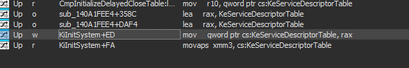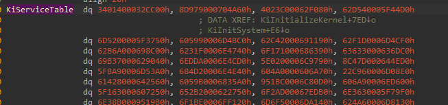 In its initialization, it is copying a pointer from variable called KiServiceTable. That’s what we are looking for.