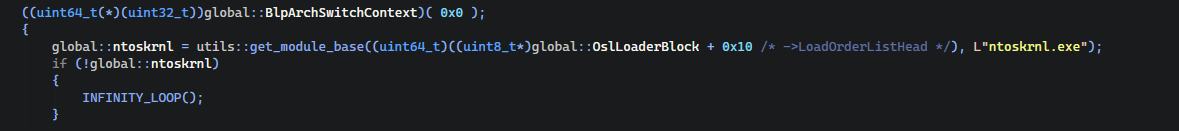 also it tries to pattern scan for the reference of OslLoaderBlock to extract its absolute address.