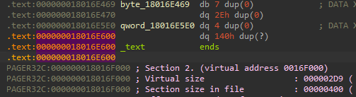 If you observe the line above, we see that it magically jumps to the address PAGER32C:000000018016F000 of the next section.